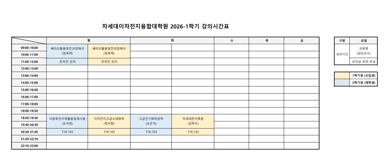*2026-1학기 강의 기간 : 2026. 3. 3. ~ 2026. 6. 22.★★모든 강의는 울산 남구 테크노산업로55번길 10 산업단지캠퍼스 UNIST관에서 진행함. ★★